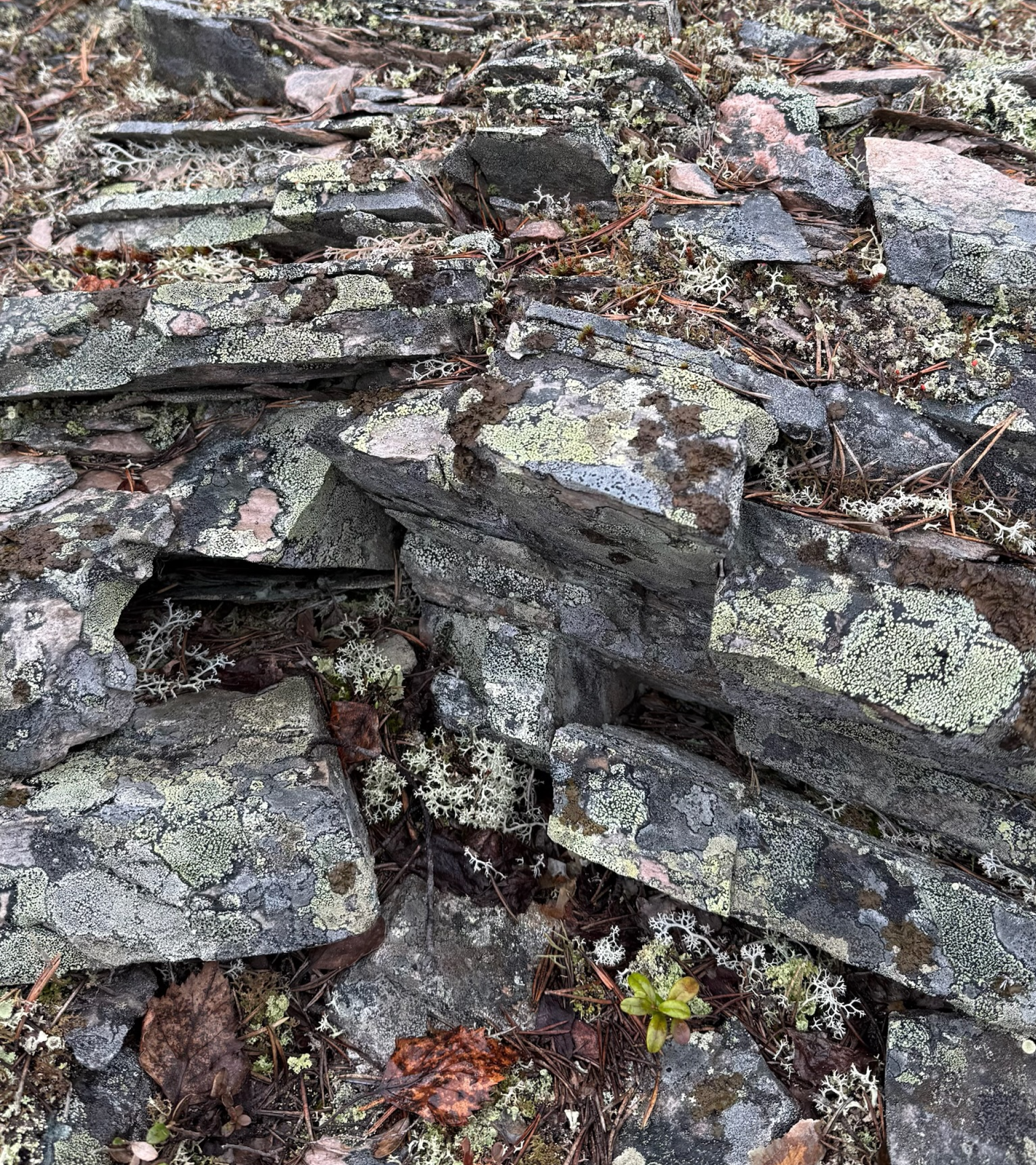 The visual language draws directly from the immediate surroundings. Unlike much of the area, the landscape around the lodge is defined by rugged, slate-like rock formations breaking through the forest floor. These layered, fractured surfaces became the structural starting point for the graphic elements.