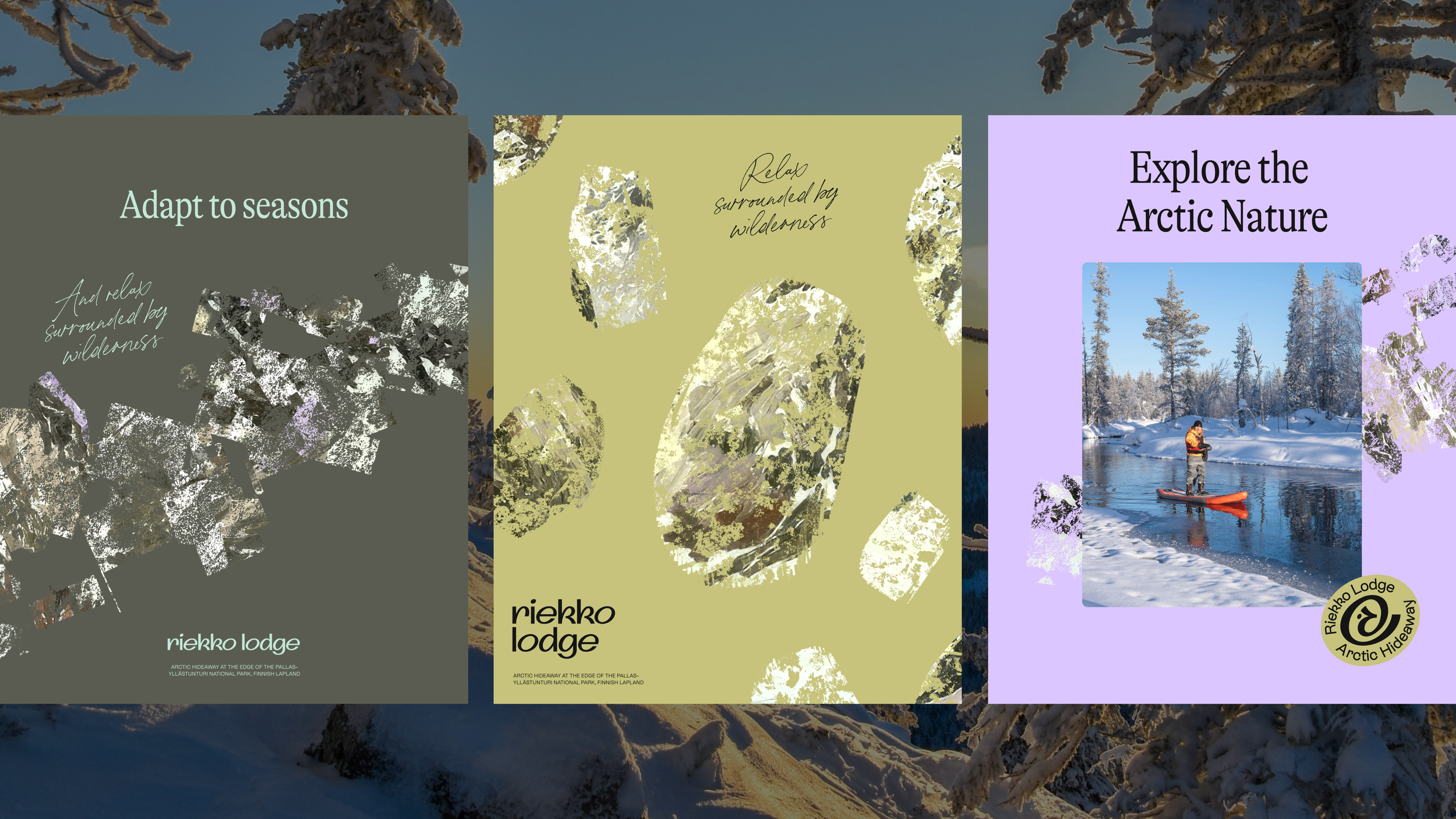 Our task was to create a visual identity that would clearly stand out from other accommodations in the area while still feeling at home in the northern landscape. Instead of relying on familiar Lapland clichés, the goal was to build an identity that feels grounded, contemporary, and easy to relate to—one that reflects both the place and its atmosphere.