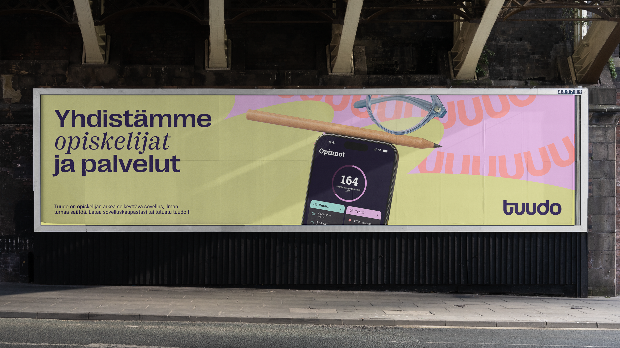 Tuudo is an all-in-one student app that simplifies everyday study life and connects students with valuable benefits, services, and job opportunities across Finland. We developed a full visual identity for the brand – from the refreshed logo and typographic system to a bold, expressive image style and modular graphic elements inspired by student life and Tuudo’s friendly, energetic personality.